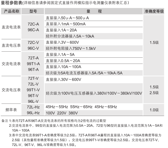 99T1型、96型、72固定式直接作用模擬指示電測(cè)量?jī)x表
