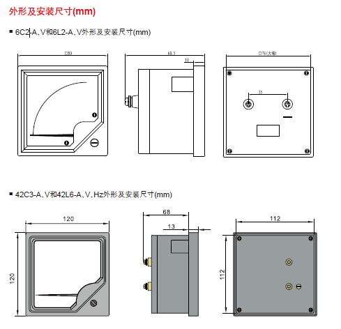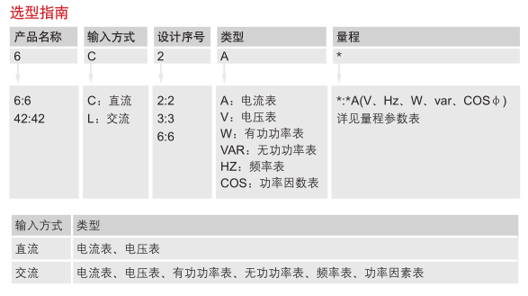 訂貨示例:備注:直流電流表中,6C2型與42C3型的直接接入電流范圍為1A~20A,