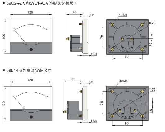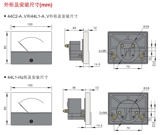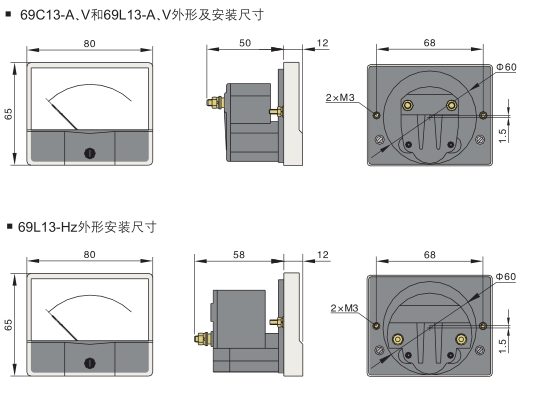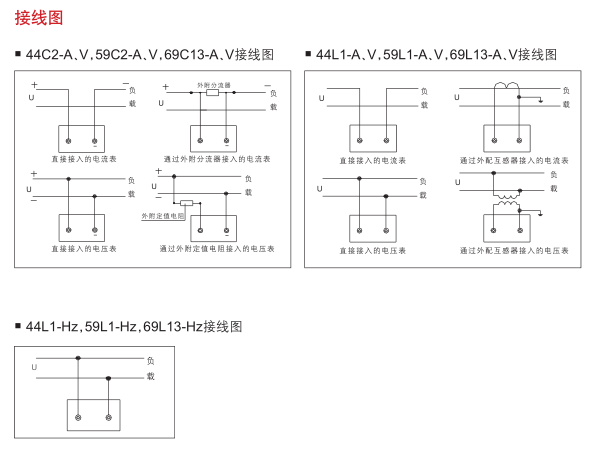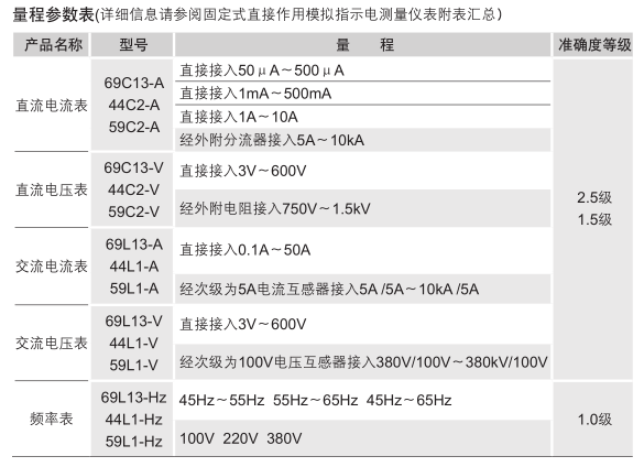 訂貨示例:備注:電壓表、電流表中,69型的準(zhǔn)確等級為2.5級,44型與59型的準(zhǔn)確等級為1.5級