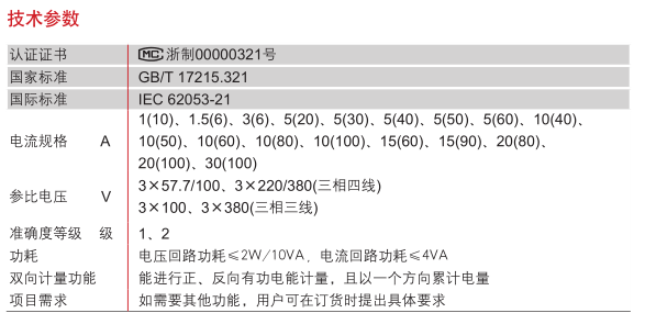 如客戶需要三相四線電子式電能表,電壓為220/380V,準(zhǔn)確度等級(jí)為1,電流規(guī)格為1.5(6)A,