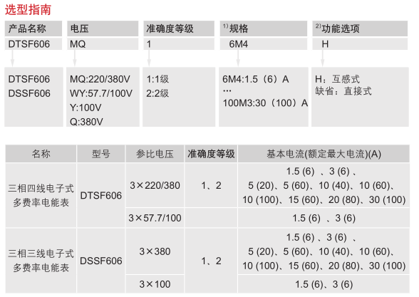 1.5(6)A,功能選項(xiàng)為互感式,則相對(duì)應(yīng)的訂貨編碼為:DTSF606MQ16M4H