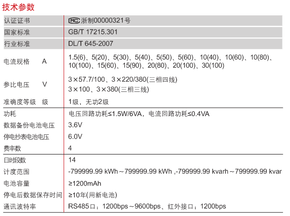 能分時計量組合有功電量,正、反有功電量及需量、組合無功,四象限無功電量,并具有