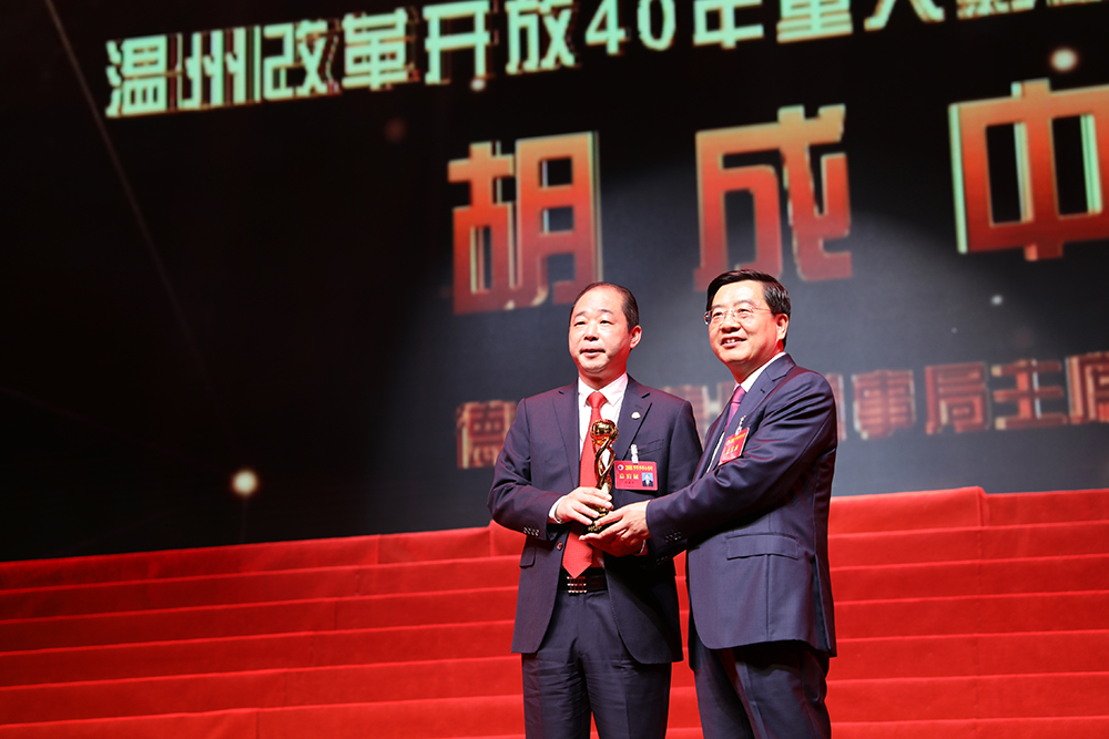 11月9日上午,2018世界溫州人大會主旨大會在溫州人民大會堂召開,近1300名來自五湖四海的溫籍嘉賓和關(guān)心支持溫州發(fā)展的各界人士相聚一堂,共襄盛舉。大會表彰了一批為溫州改革開放事業(yè)做出重大貢獻(xiàn)的企業(yè)家。德力西集團董事局主席胡成中榮膺“溫州改革開放40年重大影響力企業(yè)家”,浙江省副省長、溫州市委書記陳偉俊為胡成中頒獎!