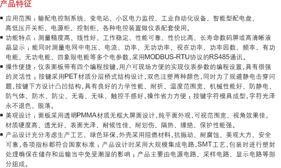 96 × 96, 品種結(jié)構(gòu)為 RS485 通訊,顯示方式為三排數(shù)碼管顯示,量程為 AC380V 5A 則相對(duì)應(yīng)的訂