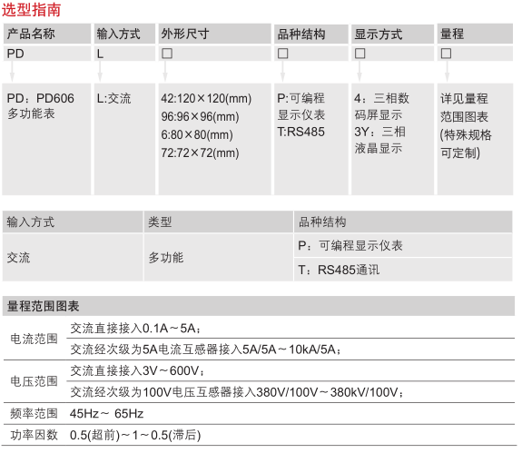 例 2 、如客戶需要三相多功能表,類型為多功能表,輸入方式為交流,外形尺寸為 42 × 42, 品種結(jié)