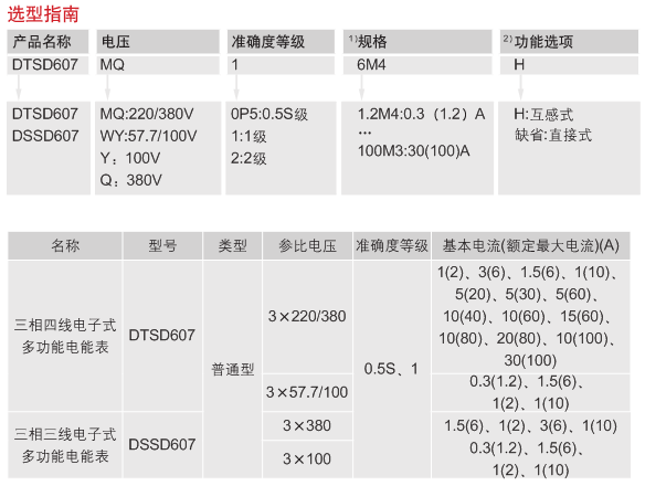 如客戶需要DTSD607型三相四線電子式多功能電能表,電壓為3×220/380V,準(zhǔn)確度等級為1級,