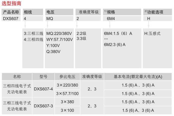 如客戶(hù)需要三相四線(xiàn)電子式無(wú)功電能表,電壓為220V,準(zhǔn)確度等級(jí)為2,電流為1.5(6)A,