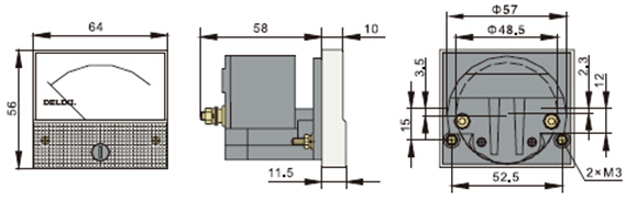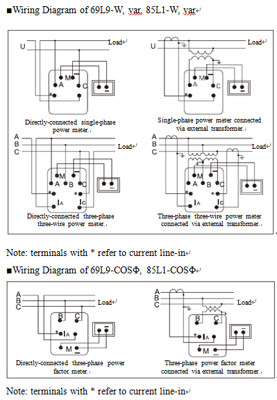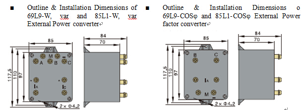 ■ Outline & Installation Dimensions of 69C9-A, V and69L9-A, V, W, var, COSΦ (mm)